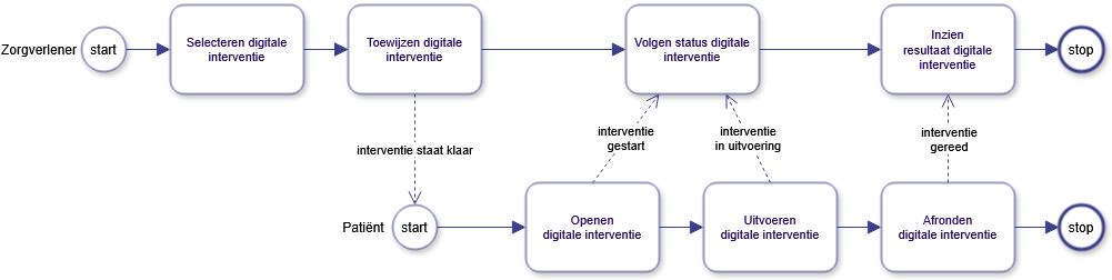 | Uitvoeren digitale interventie | De patiënt of haar zorgteam kan de interventie nu uitvoeren. | |