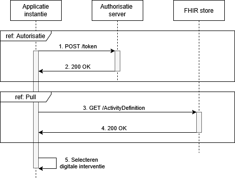 | Trigger | De zorgverlener initieert het ophalen van digitale interventies in haar applicatieinstantie. |