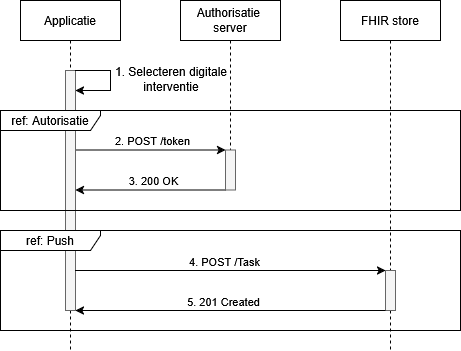 | Systemen | Applicatieinstantie, Autorisatie server, FHIR store |