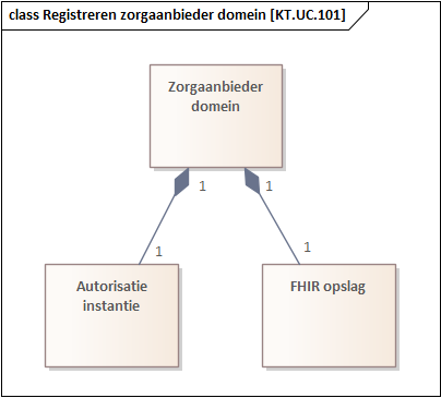 | Uitzonderingen | Het kan voorkomen dat een applicatiebeheerder (leverancier) een zorgaanbieder domein aanvraagt ten behoeve van ontwikkelwerk. In dit geval kan ook een leverancier een zorgaanbieder domein toegewezen krijgen - dit zal echter altijd een domein in een ontwikkelomgeving betreffen. |