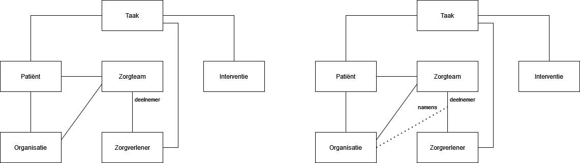 Een relatie die nog ontbreekt in Koppeltaal is om te weten namens welke organisatie of organisatie eenheid zo’n zorgverlener deelneemt aan een CareTeam. Het CareTeam.participantonBehalfOf veld kan deze behoefte invullen. Het veld wordt echter nog niet gesupport in Koppeltaal.