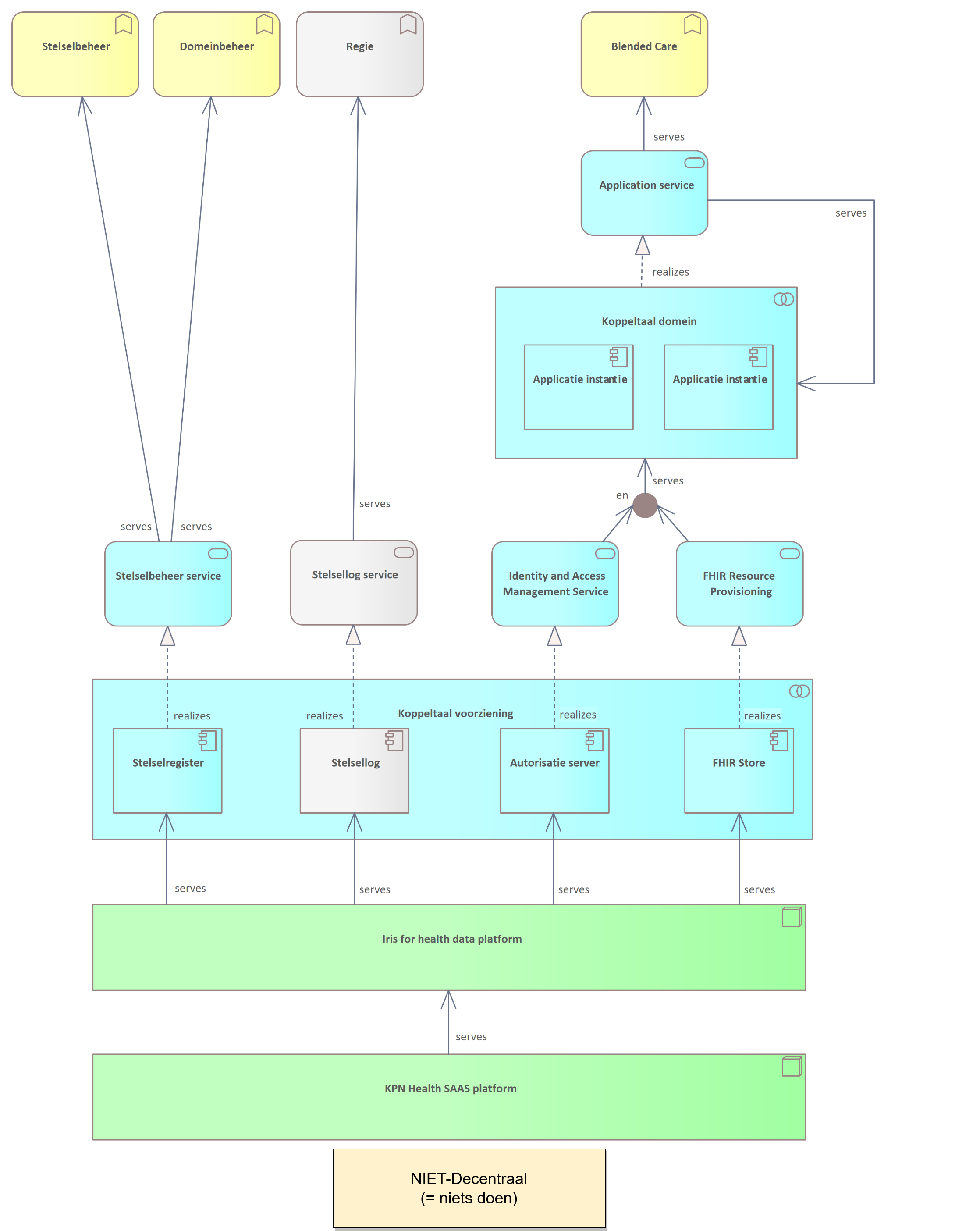 Tijdens het onderzoek in 2022 zijn de onderstaande schetsen gemaakt die weergeven wat de implementatieverschillen zijn tussen achtereenvolgens; Niet-decentraal, Scenario 1, Scenario 2.