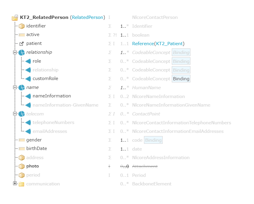 | De (FHIR) RelatedPerson (resource) is een representatie van een naaste, een persoon die betrokken is bij de zorg voor een patiënt, maar niet wie in behandeling is bij de Zorgaanbieder, noch formele verantwoordelijkheid heeft in het zorgtraject. |