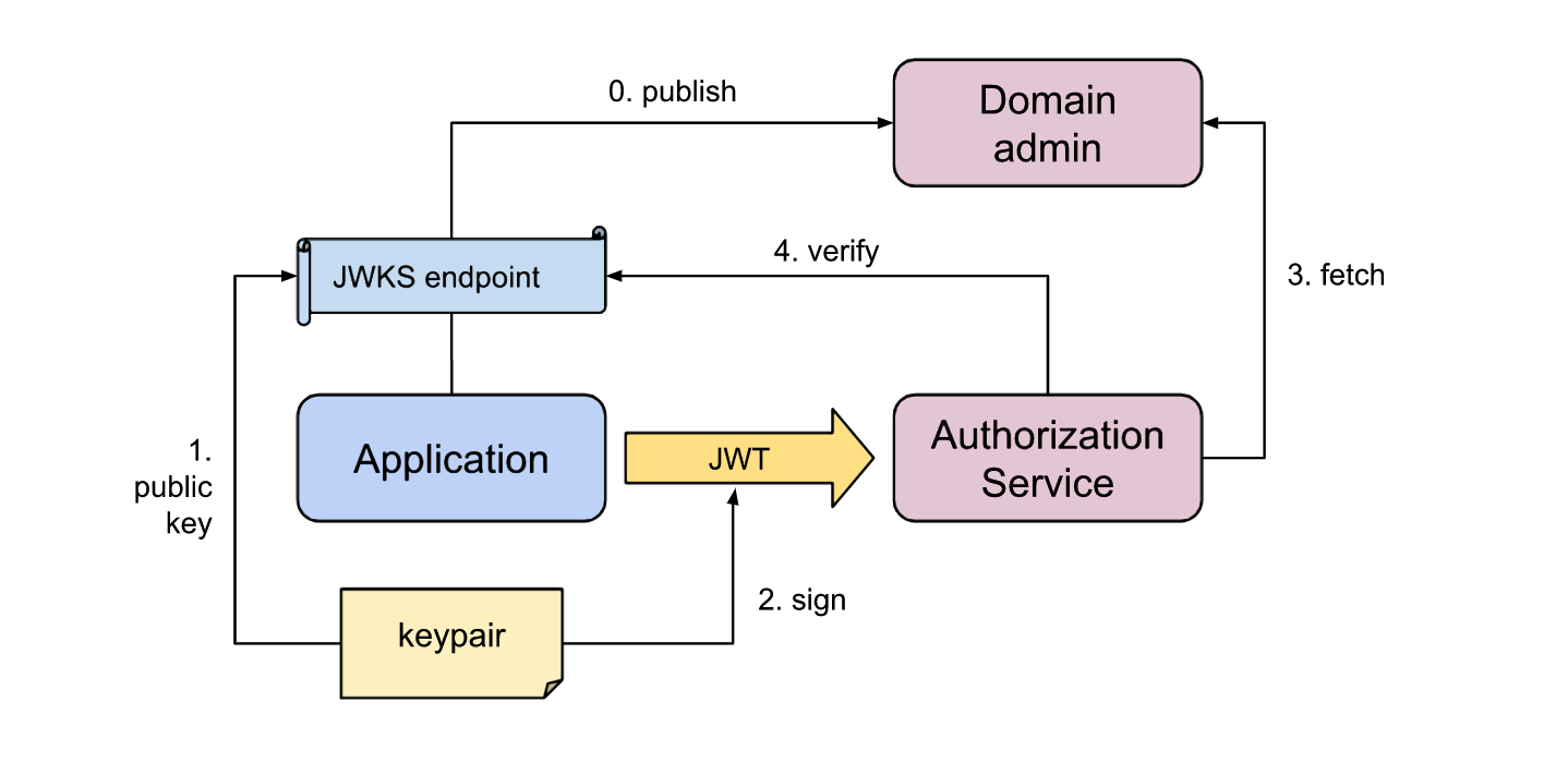 Omdat de publieke sleutel wordt gebruikt om de identiteit van een applicatie in het domein vast te stellen, worden de publieke sleutels ook wel aangeduid als de identiteit van de applicatie in een domein. Door de identiteit te publiceren, wordt het voor andere applicaties en componenten mogelijk de identiteit vast te stellen. Dit gebeurt door handtekeningen (signatures) van berichten van de applicatie te valideren met behulp van de publieke sleutel zoals die bekend is van de applicatie. Het systeem kan door het ondertekenen van een arbitrair bericht met de geheime sleutel aantonen dat het systeem de eigenaar is van deze geheime sleutel, door met de publieke sleutel de handtekening te valideren kan dit worden vastgesteld. Immers, enkel degene die de private sleutel heeft kan het bericht ondertekend hebben. Vertrouwen tussen systemen kan worden opgebouwd door elkaars publieke sleutels te accepteren.