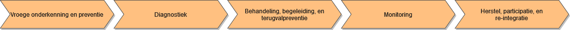 Toelichting | Monitoring kan voorafgaan aan de behandeling en relevant zijn in de fase van Behandeling, begeleiding en terugvalpreventie en in de fase van Herstel, participatie, re-integratie en langdurige en chronische GGZ. |